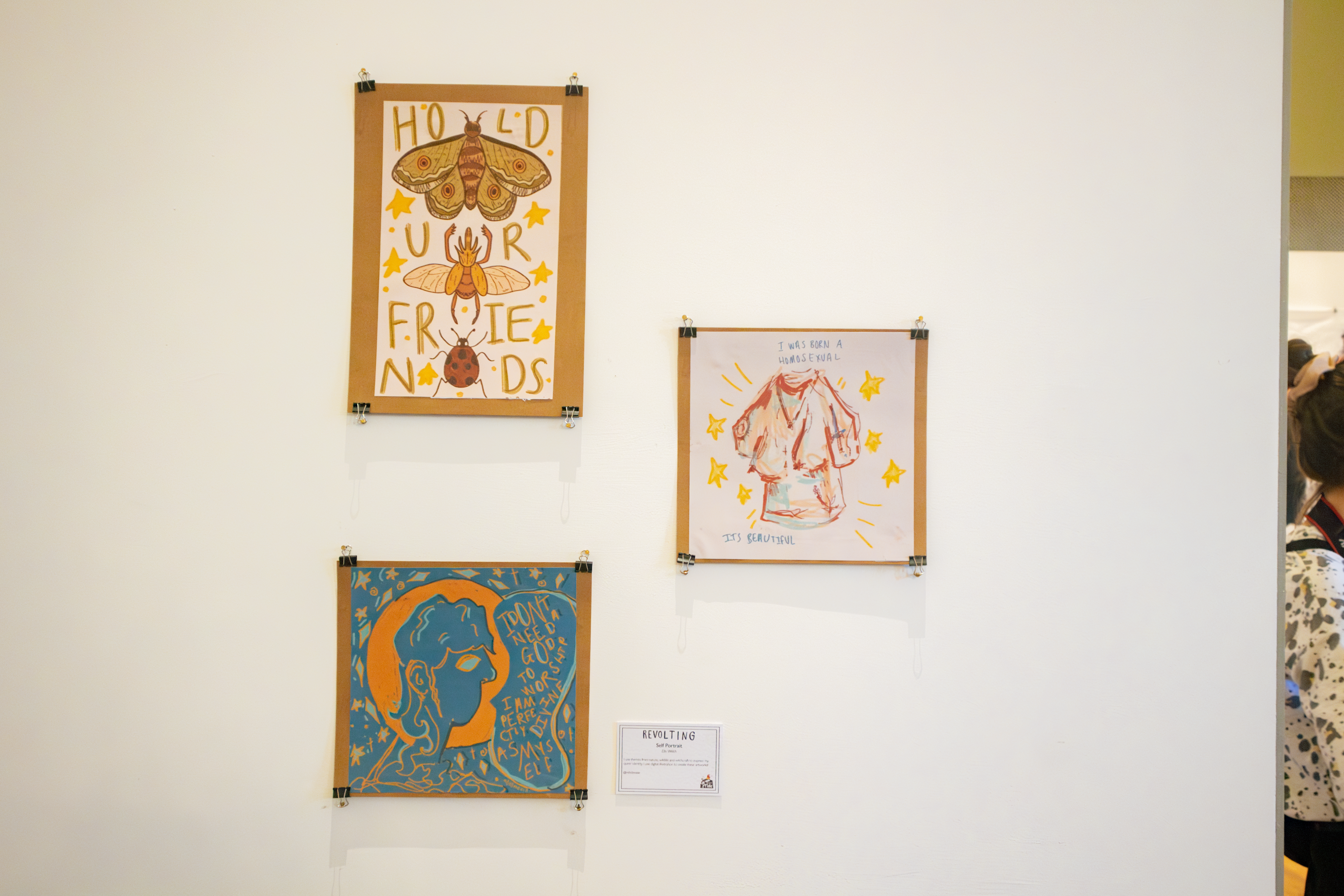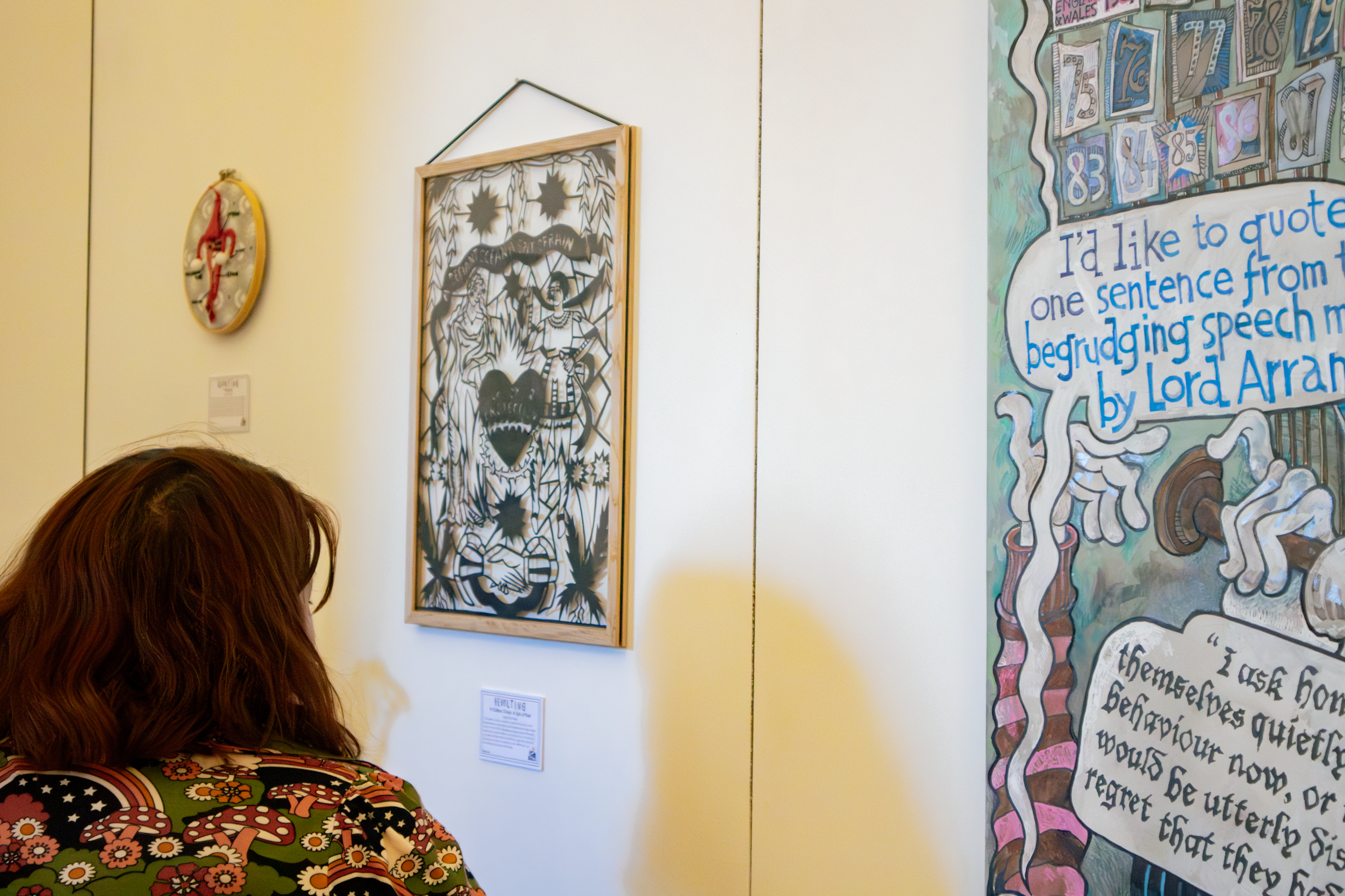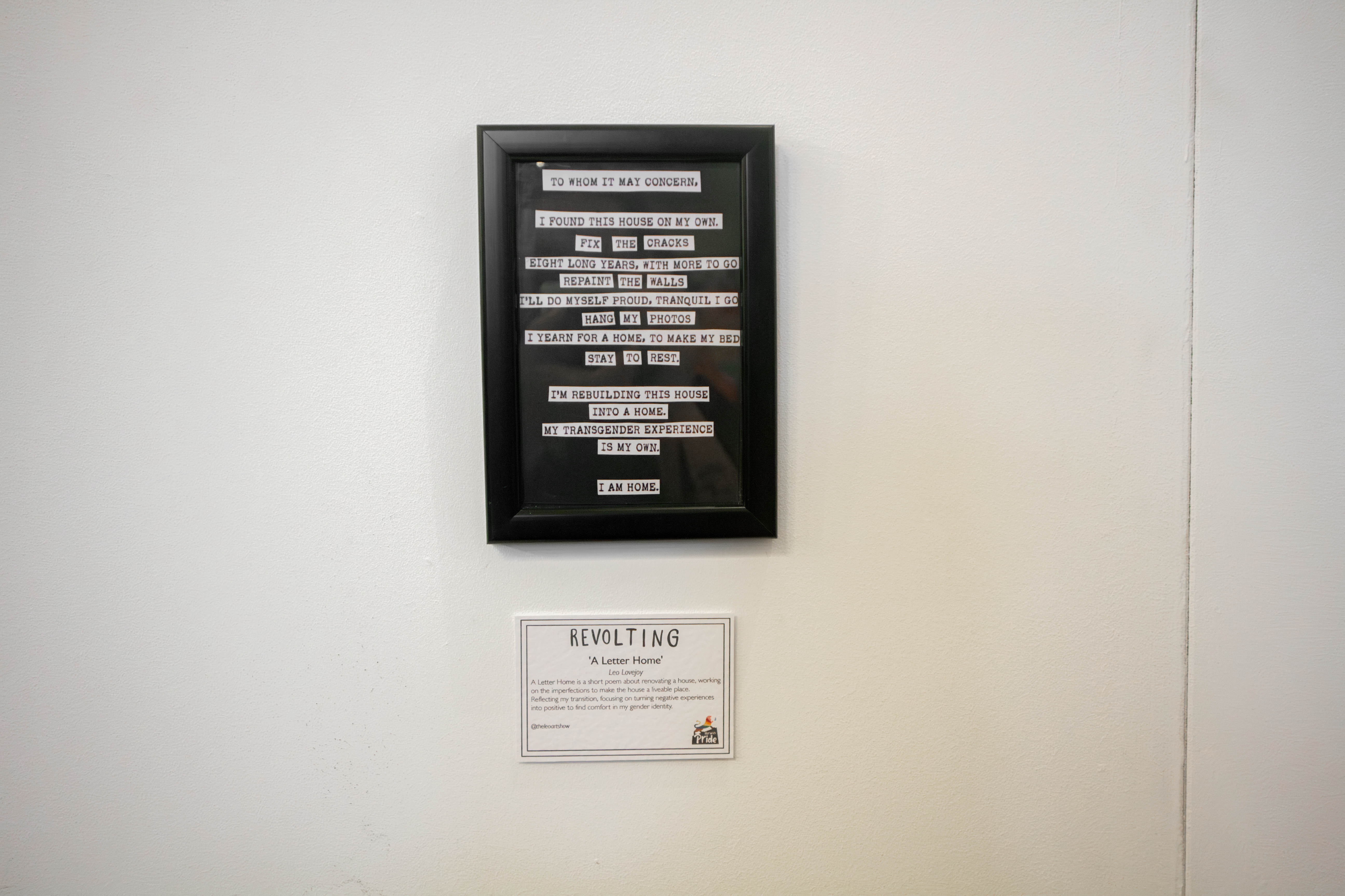For Norwich Pride’s annual exhibition, we chose the theme queer activism history with the title ‘Revolting’. Artists have responded to this theme by looking to their queer history, community, and experiences relating to demonstrations, protests, and politics. Inspired by historic events such as Section 28, the AIDS crisis, and the marriage equality act. It also looks at recent events such as conversion therapy, ‘the trans debate’, and the increase in violent hate crimes.