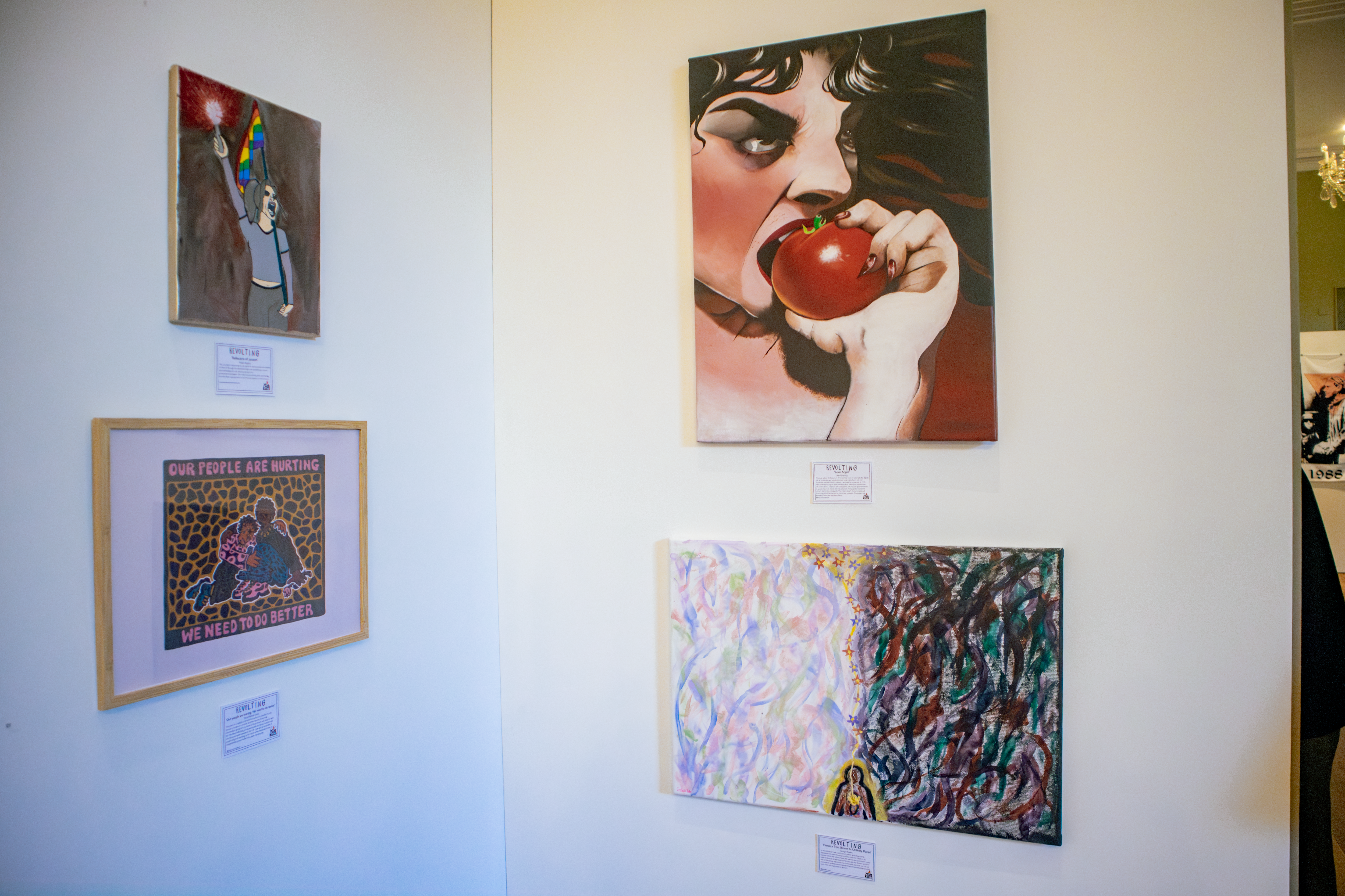 These objects are displayed amongst the artworks to bring context and remind us of the roots that came from the activist work of generations before us.
